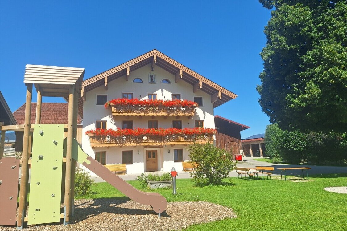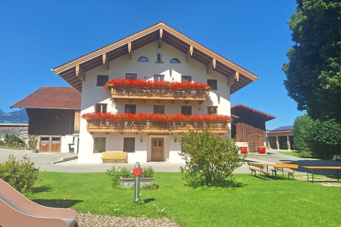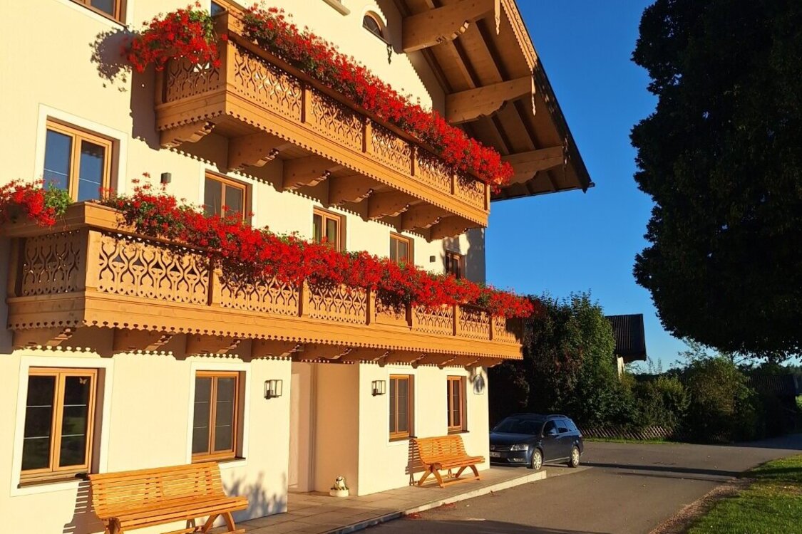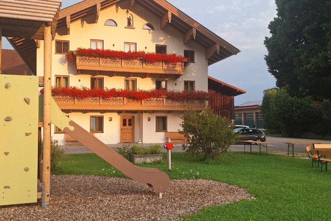 In ruhiger Lage im kleinen Örtchen Staudach-Egerndach. Wir sind ein voll bewirtschafteter Haupterwerbsbetrieb mit 50 Milchkühen, 50 Stück Jungvieh, 2 Pferden in Pension, Hühnern, einem Hund und 2 Katzen. Bei uns können Sie sich vom Stress des Alltags erholen und die einmalige Natur genießen. Unsere 5 neu gebauten Ferienwohnungen bieten viel Komfort und höchsten Standard. Gerne würden wir Sie auf unserem Hof begrüßen.